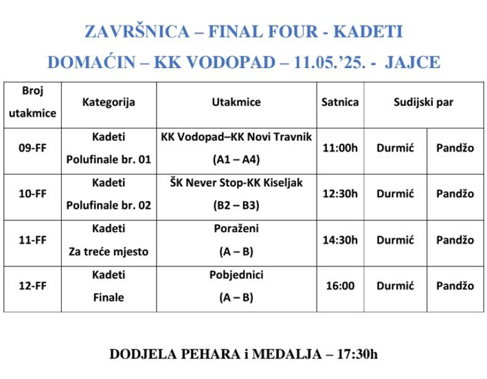 Mjesta na prestižnom Final4 turniru za kadete izborili su: